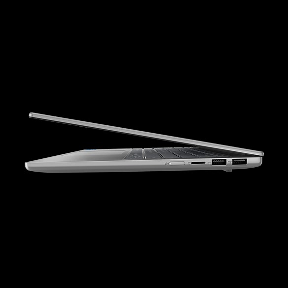IdeaPad Slim 5i Gen 10 は、わずか 16.9 mmの薄さ、 1.39 kgの軽さのスリムでスタイリッシュなデザインで、ルナグレーのカラーを採用。持ち運びやすく、外出先での使用に最適です。